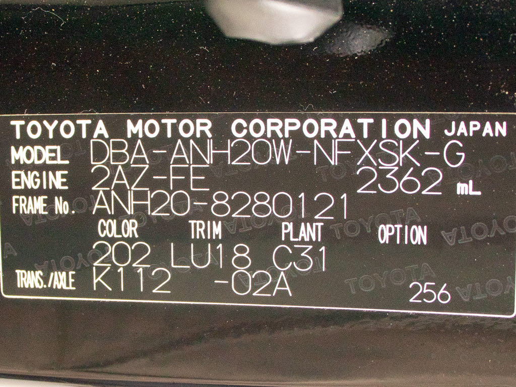 車名 | ヴェルファイア | 車台番号 | 121 |