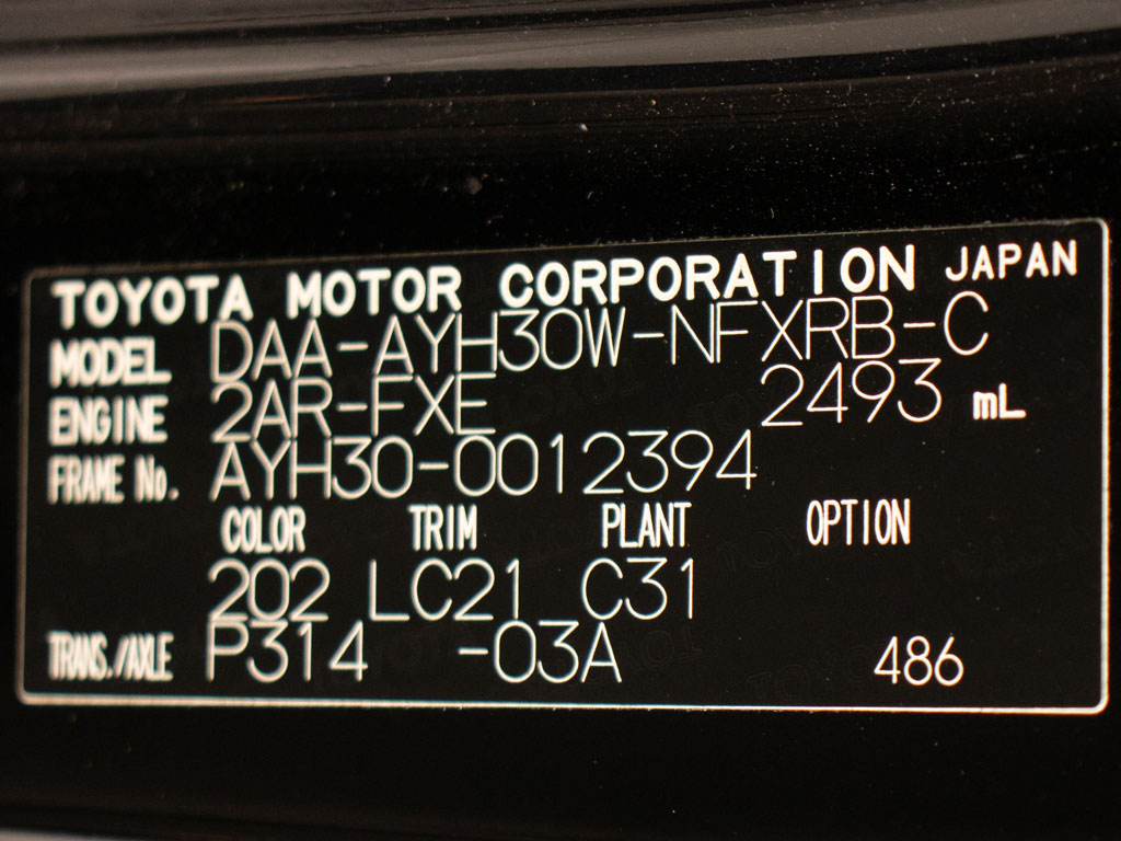 車名 | ヴェルファイア | 車台番号 | 394 |