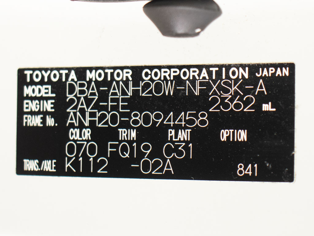 車名 | ヴェルファイア | 車台番号 | 458 |