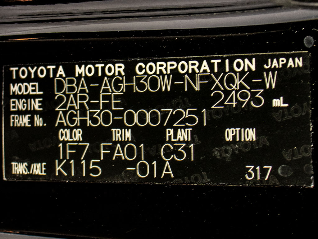 | 車名 | ヴェルファイア | 車台番号 | 251 |