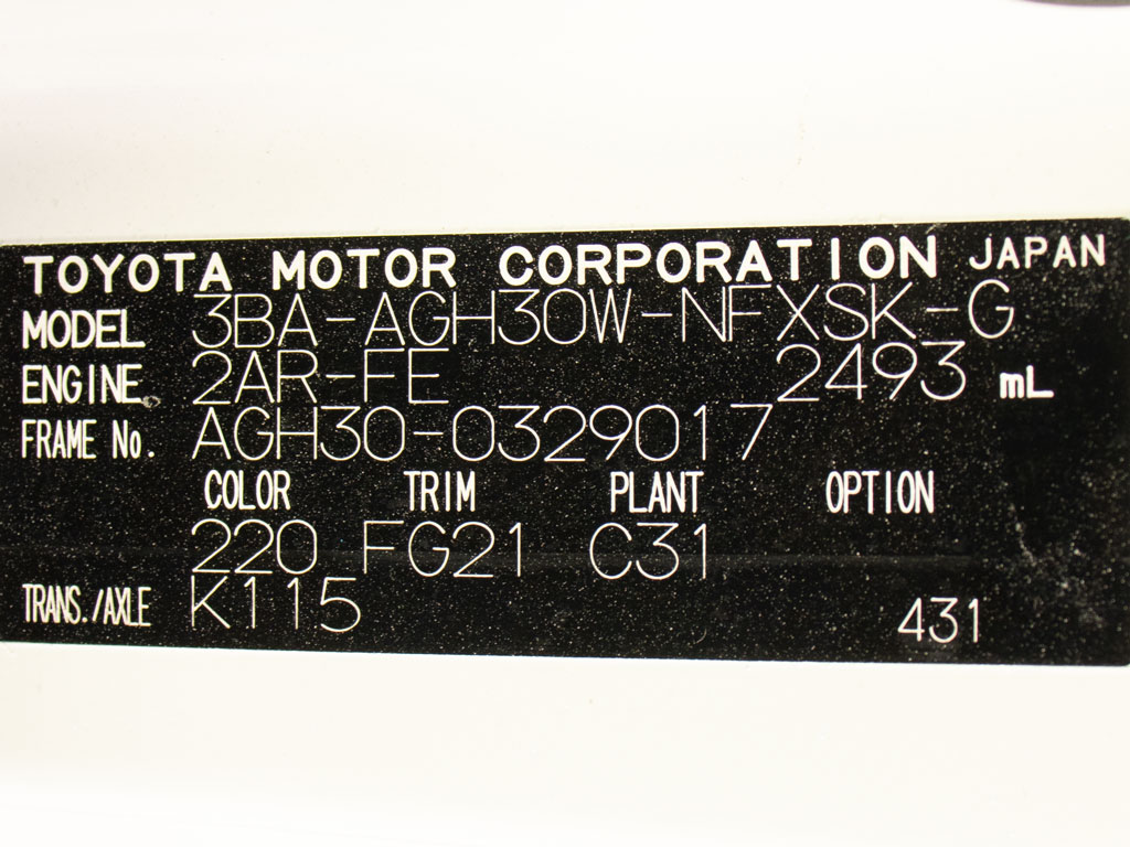 | 車名 | ヴェルファイア | 車台番号 | 017 |