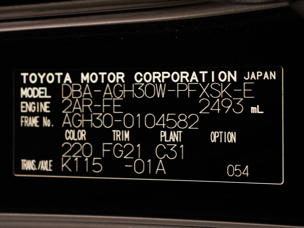 | 車名 | アルファード | 車台番号 | 582 |
