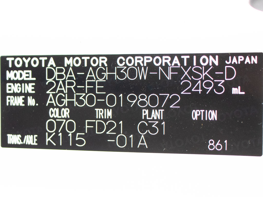| 車名 | ヴェルファイア | 車台番号 | 072 |