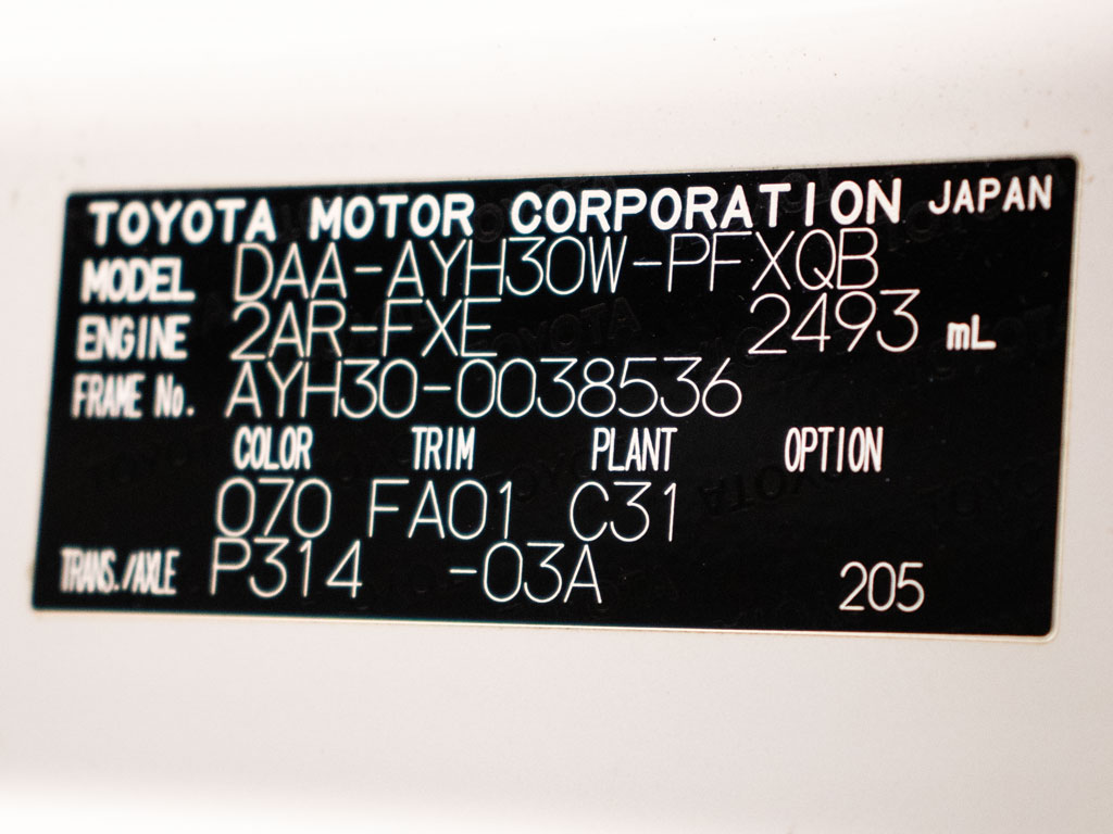 | 車名 | アルファード | 車台番号 | 536 |
