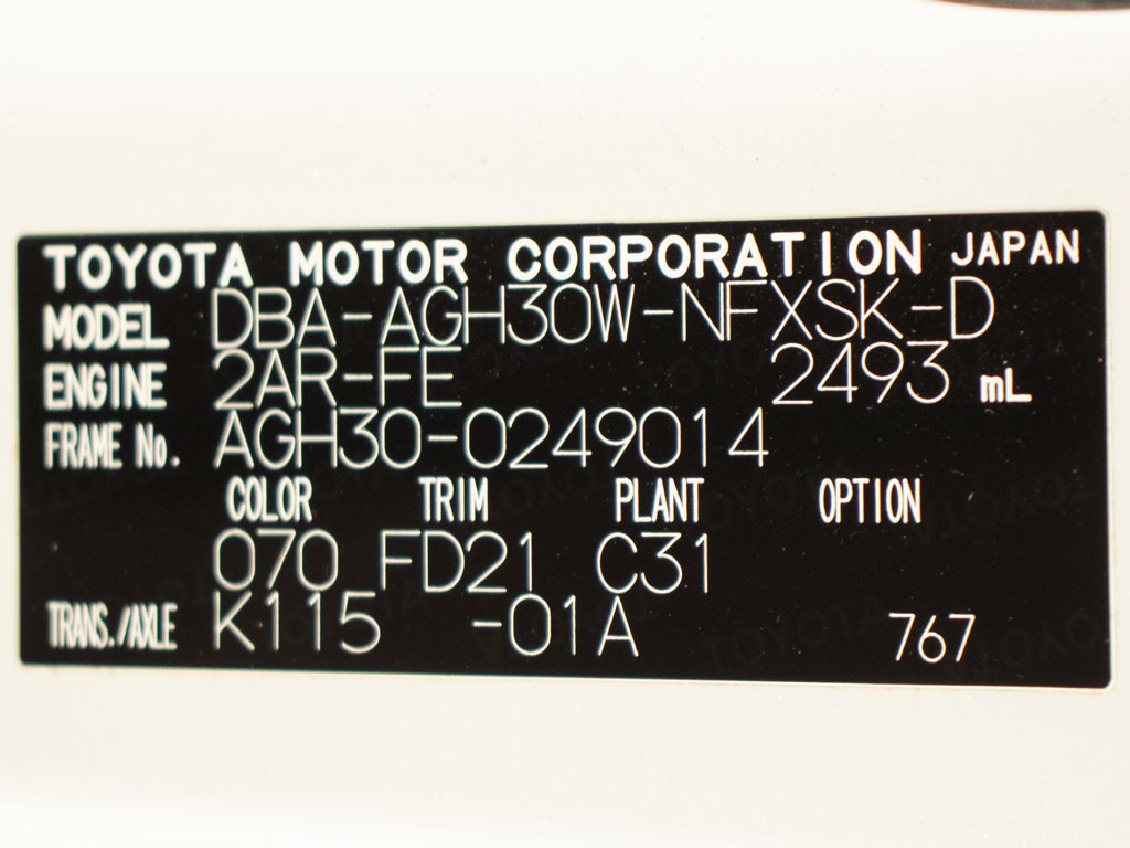 | 車名 | ヴェルファイア | 車台番号 | 014 |