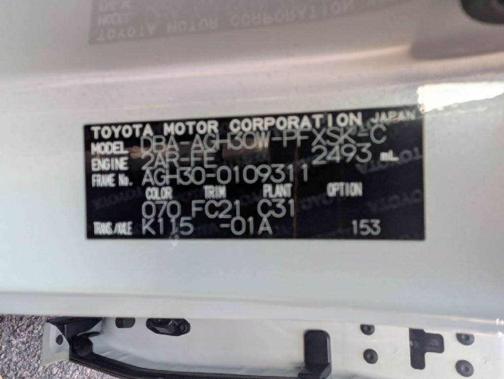 | 車名 | アルファード | 車台番号 | 311 |