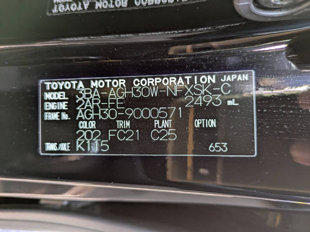 | 車名 | ヴェルファイア | 車台番号 | 571 |