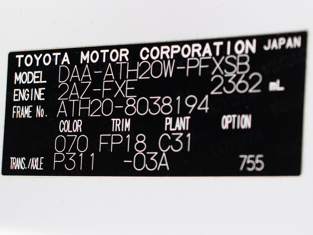 | 車名 | アルファード | 車台番号 | 194 |