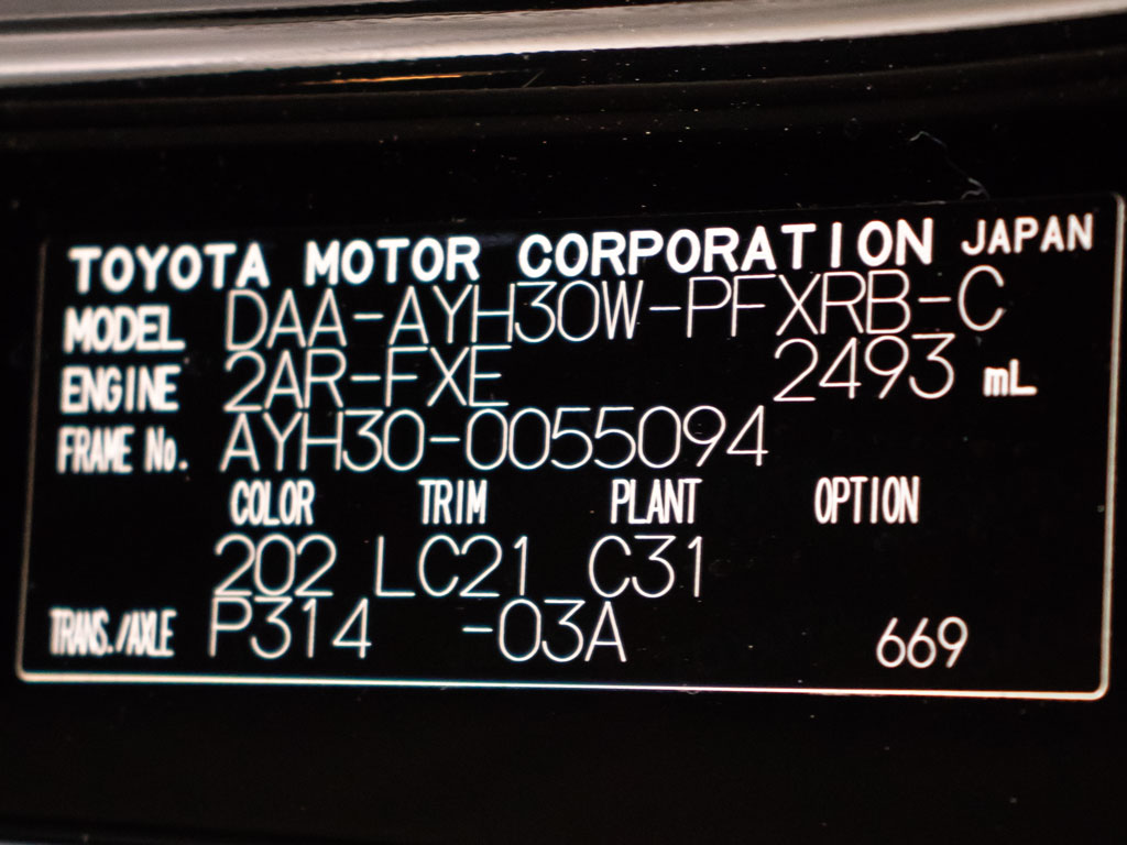 | 車名 | アルファード | 車台番号 | 094 |