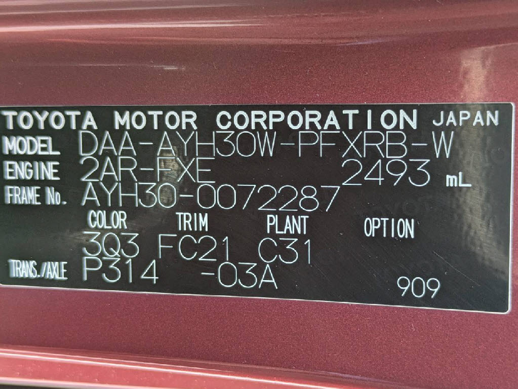| 車名 | アルファード | 車台番号 | 287 |