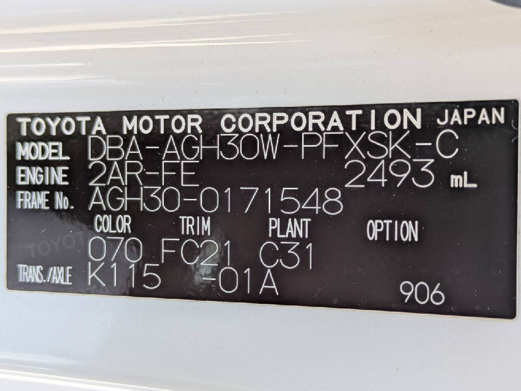 | 車名 | アルファード | 車台番号 | 548 |