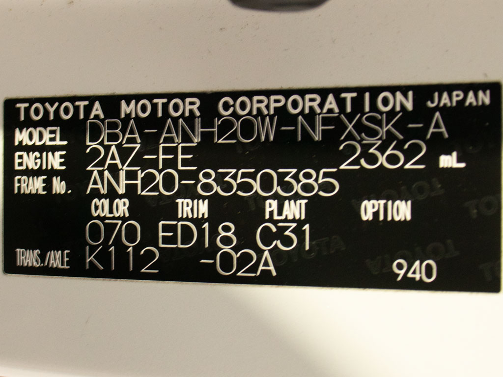 | 車名 | ヴェルファイア | 車台番号 | 385 |