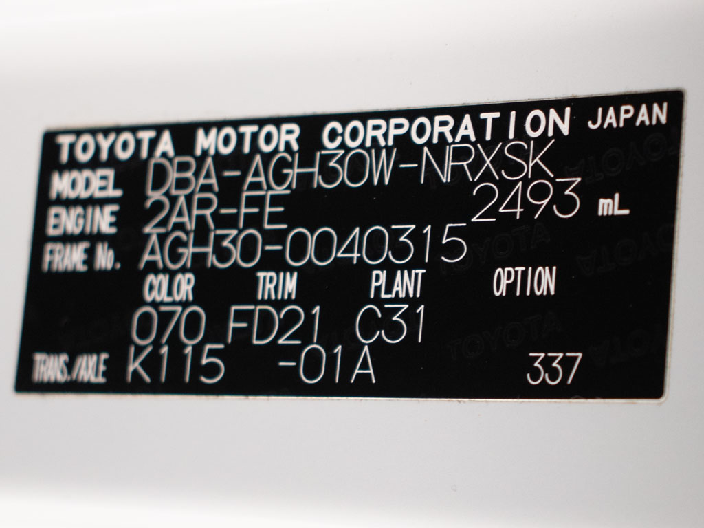 | 車名 | ヴェルファイア | 車台番号 | 315 |