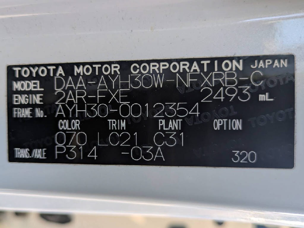 | 車名 | ヴェルファイア | 車台番号 | 354 |