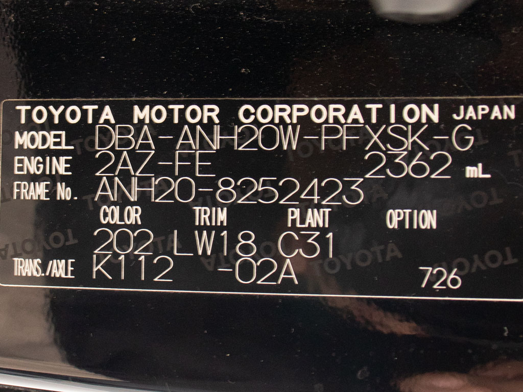 | 車名 | アルファード | 車台番号 | 423 |