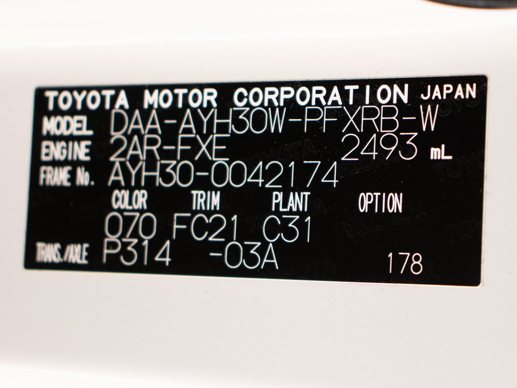 | 車名 | アルファード | 車台番号 | 174 |