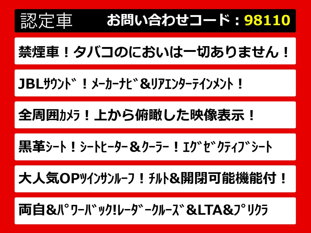 | グレード | アルファード 2.5S-C JBL ツインサンルーフ 黒革シート 禁煙 | ||