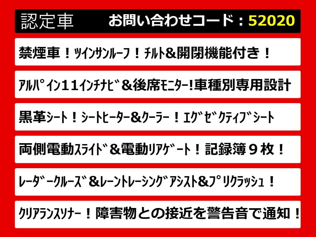 | グレード | アルファード 2.5S-C 11インチナビ ツインサンルーフ 禁煙車 | ||