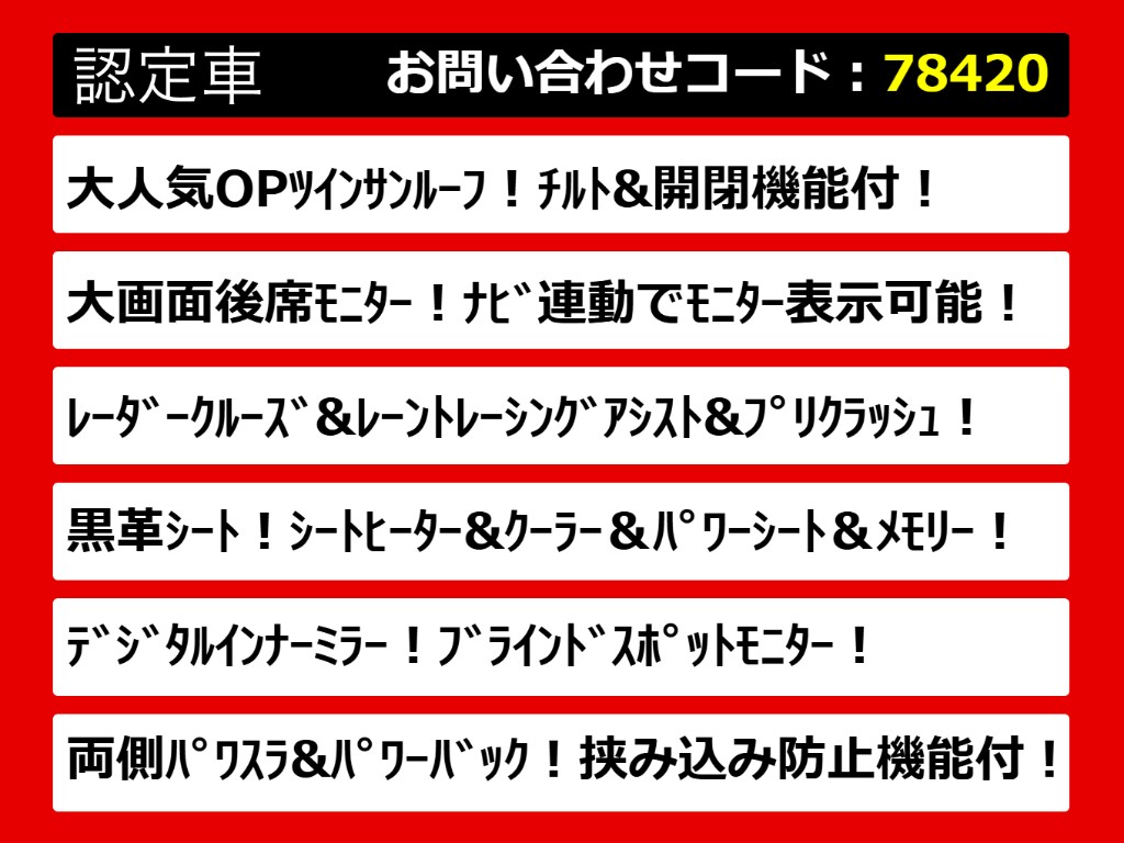 | グレード | ヴェルファイア 2.5Z-G 黒革シート リアモニ サンルーフ BSM | ||