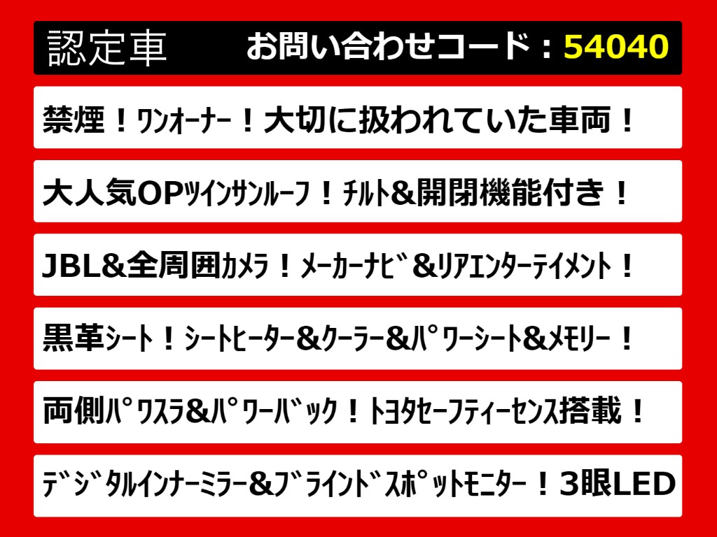 | グレード | アルファード2.5S-C 禁煙ワンオーナー サンルーフ JBL&リアエンタ | ||