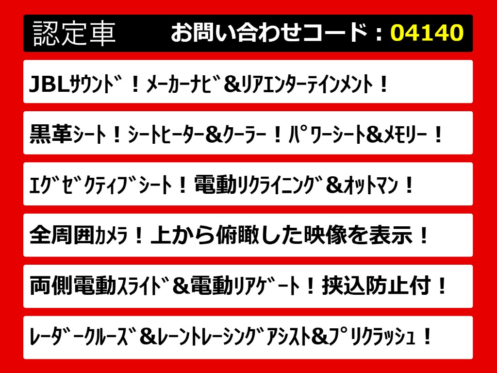 | グレード | アルファード 2.5S-C JBL リアエンタメ 全周囲カメラ 黒革 |