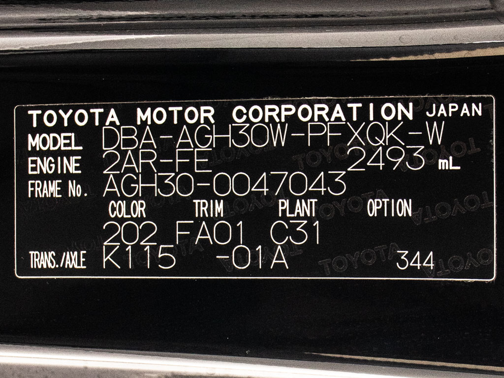 | 車名 | アルファード | 車台番号 | 043 |