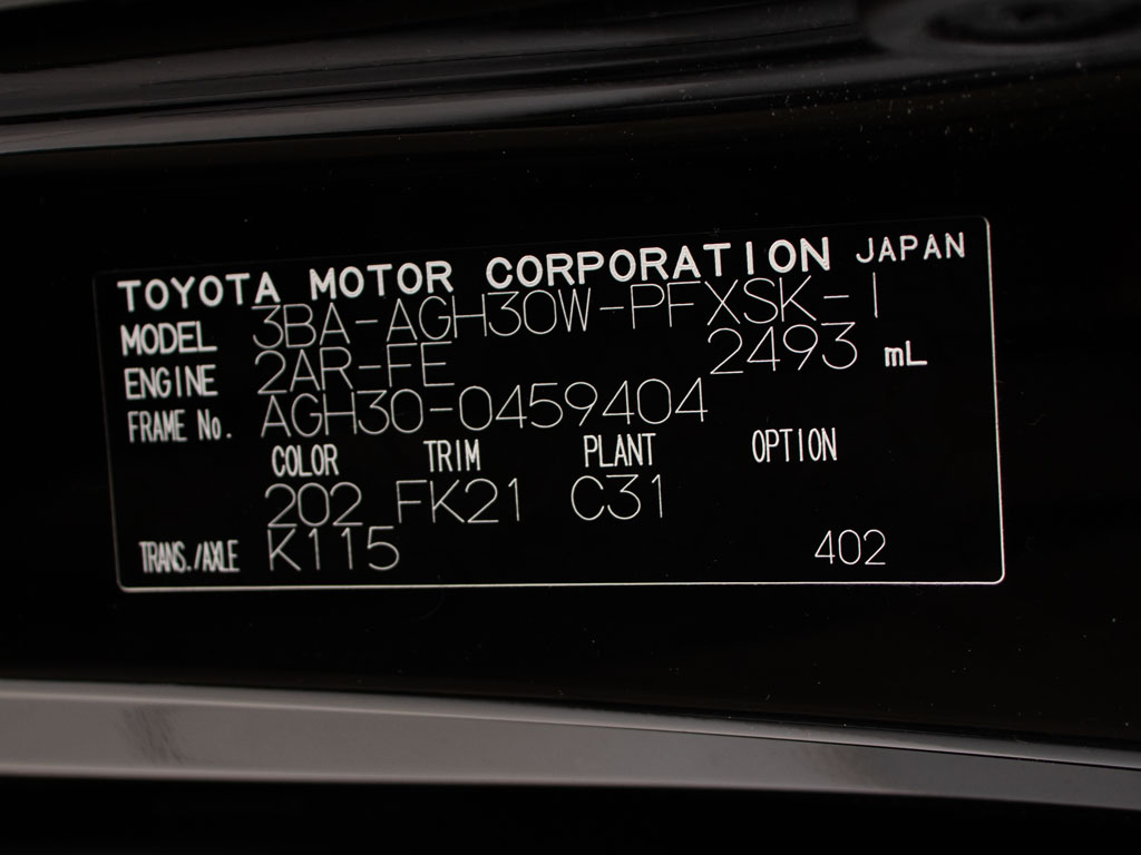 | 車名 | アルファード | 車台番号 | 404 |