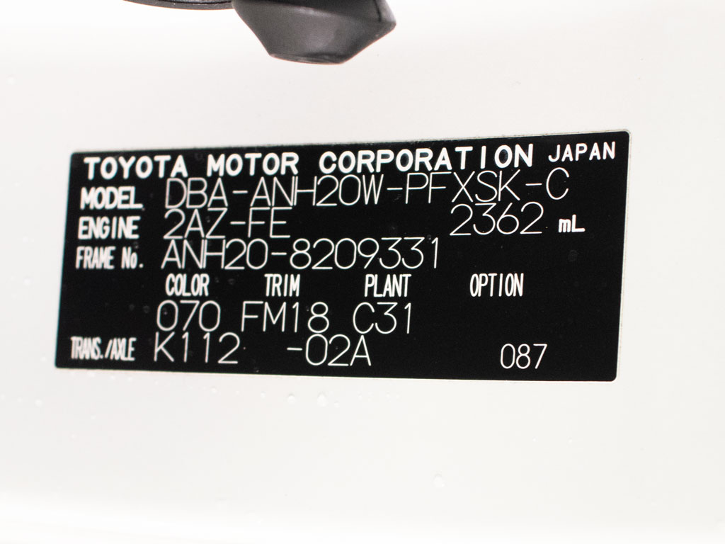 | 車名 | アルファード | 車台番号 | 331 |