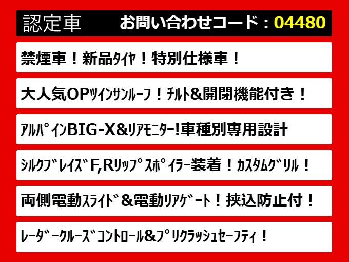 | グレード | アルファード 2.5S-AタイプB 11インチナビ新品タイヤ 禁煙 | ||