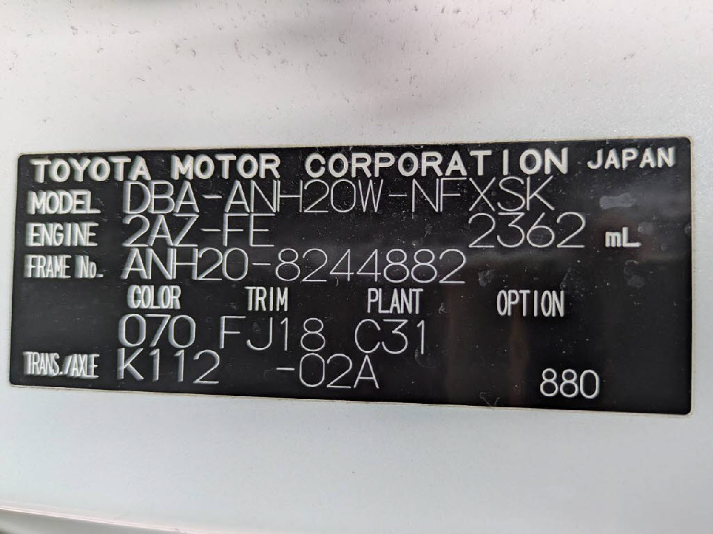 | 車名 | ヴェルファイア | 車台番号 | 882 |