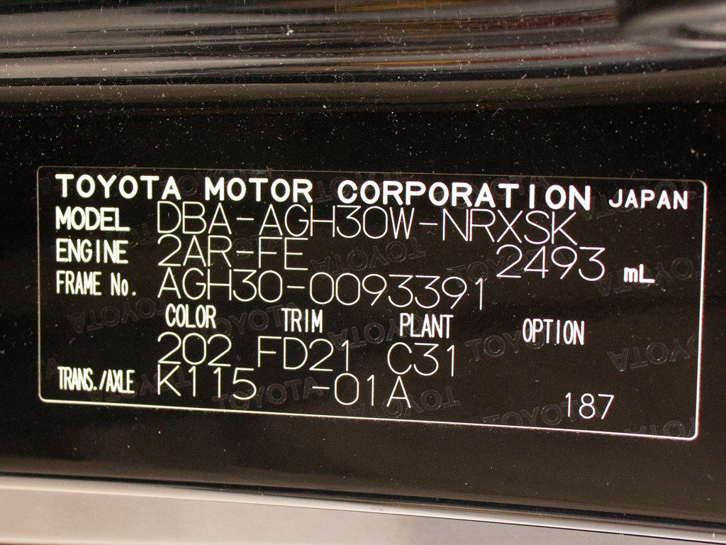 | 車名 | ヴェルファイア | 車台番号 | 391 |