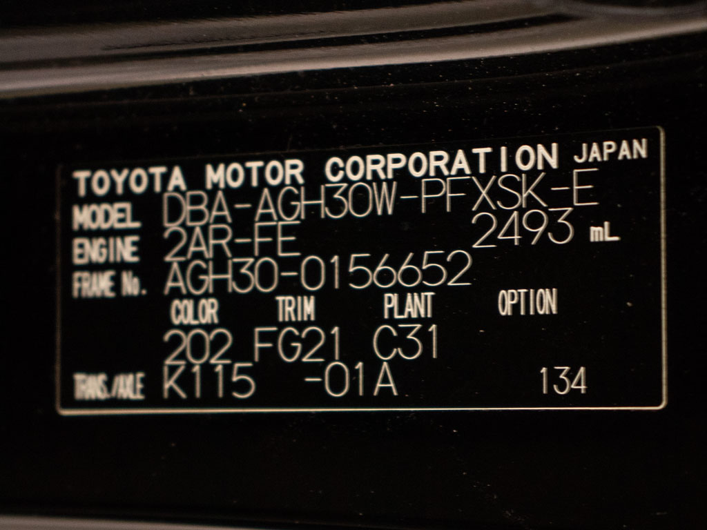 | 車名 | アルファード | 車台番号 | 652 |