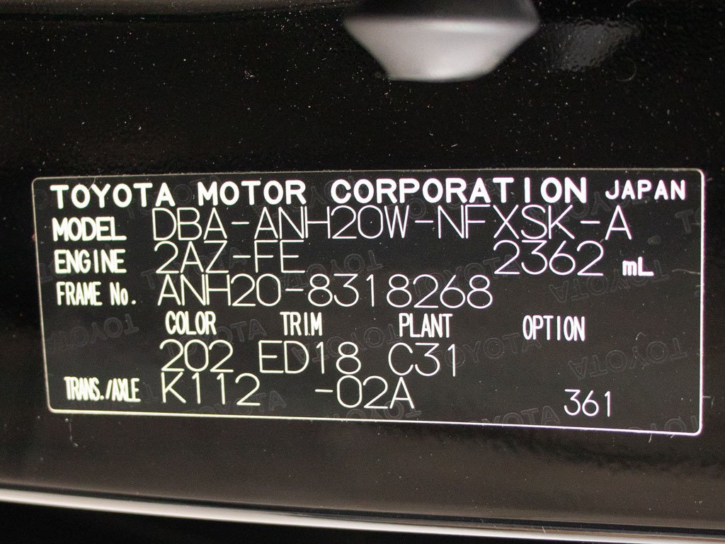 | 車名 | ヴェルファイア | 車台番号 | 268 |