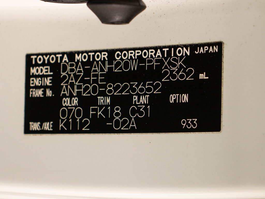 | 車名 | アルファード | 車台番号 | 652 |