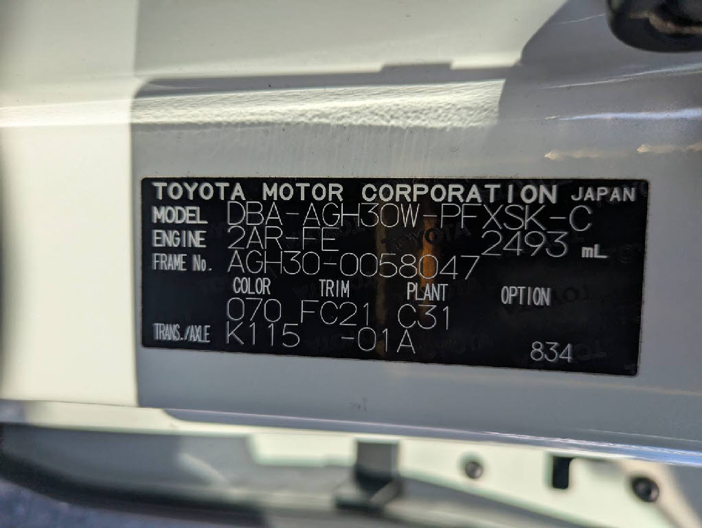 | 車名 | アルファード | 車台番号 | 047 |