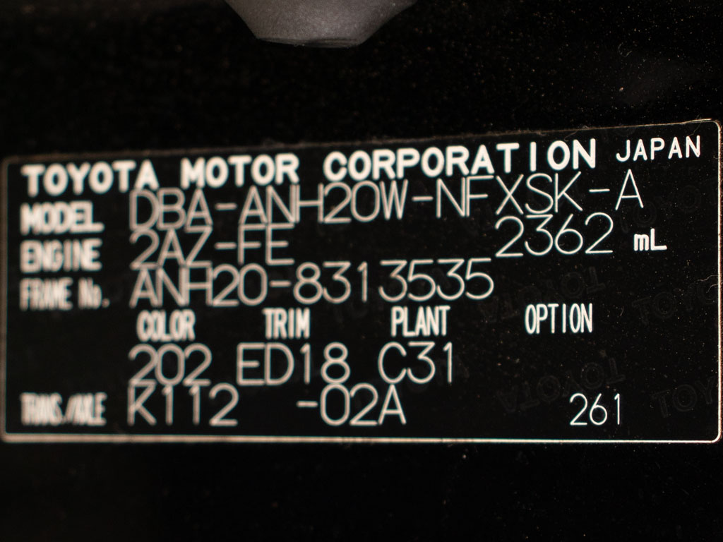 | 車名 | ヴェルファイア | 車台番号 | 535 |