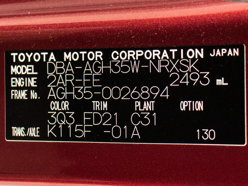 | 車名 | ヴェルファイア | 車台番号 | 894 |