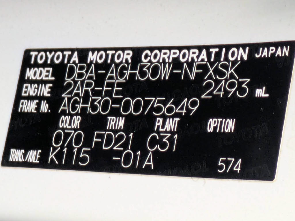 | 車名 | ヴェルファイア | 車台番号 | 649 |