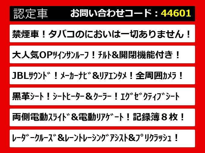 | グレード | アルファード 2.5S-C サンルーフ JBL 記録簿8枚 禁煙 | ||