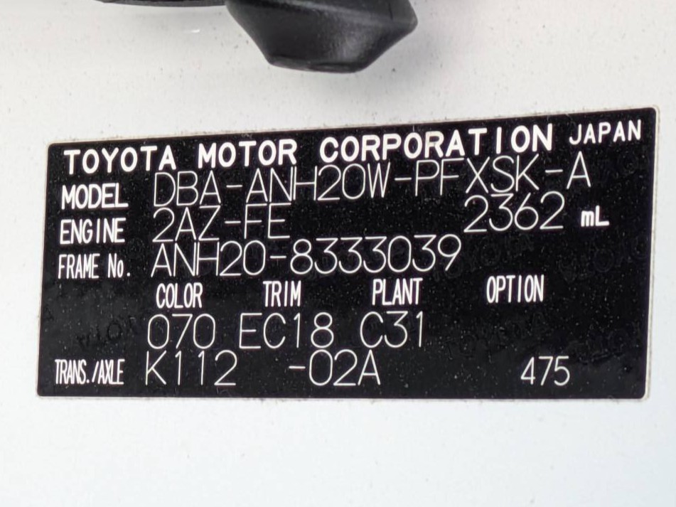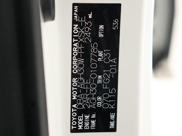 | 車名 | アルファード | 車台番号 | 039 |