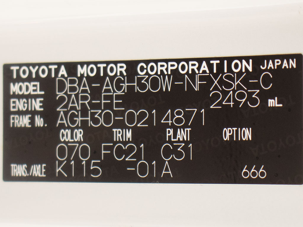 | 車名 | ヴェルファイア | 車台番号 | 871 |