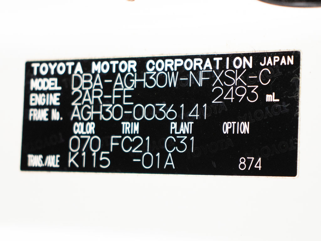 | 車名 | ヴェルファイア | 車台番号 | 141 |
