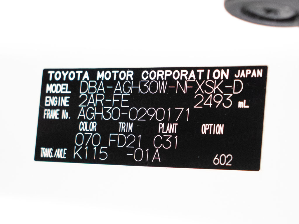 | 車名 | ヴェルファイア | 車台番号 | 171 |