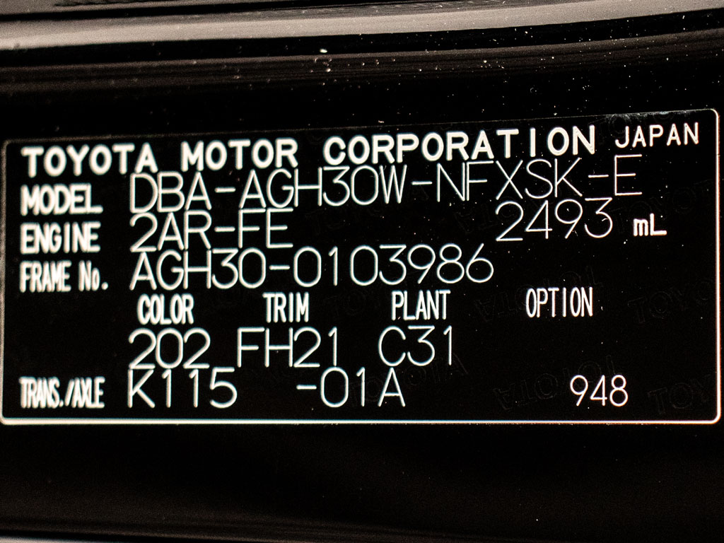 | 車名 | ヴェルファイア | 車台番号 | 986 |