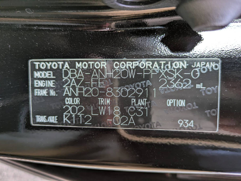 | 車名 | アルファード | 車台番号 | 911 |
