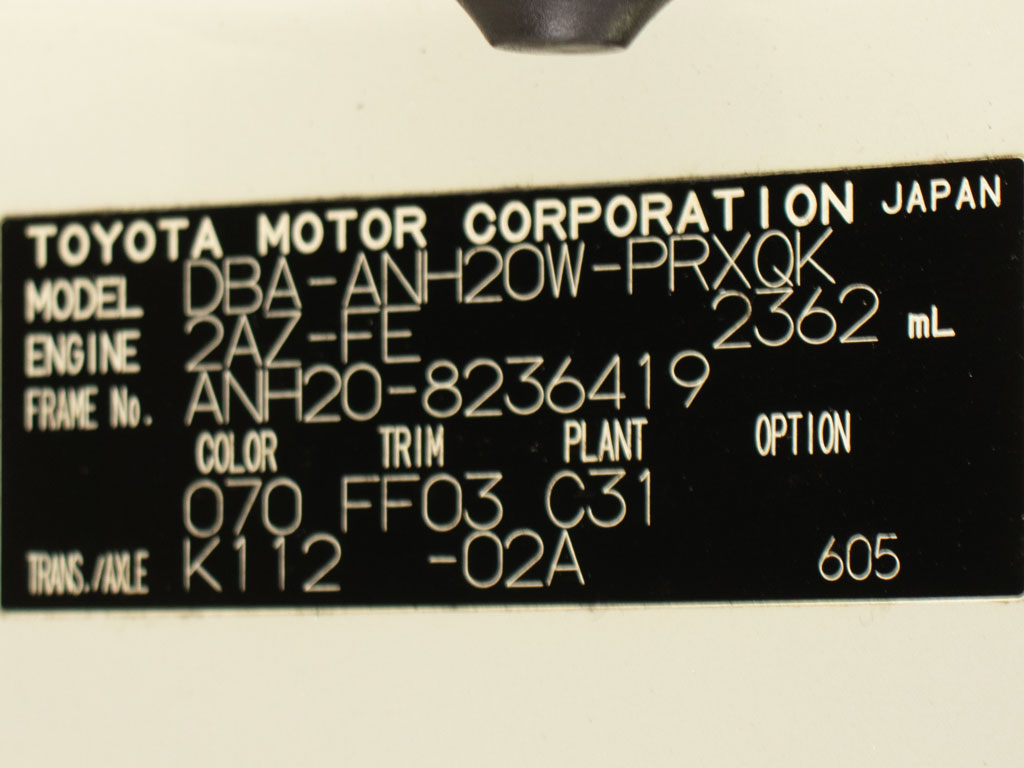 | 車名 | アルファード | 車台番号 | 419 |
