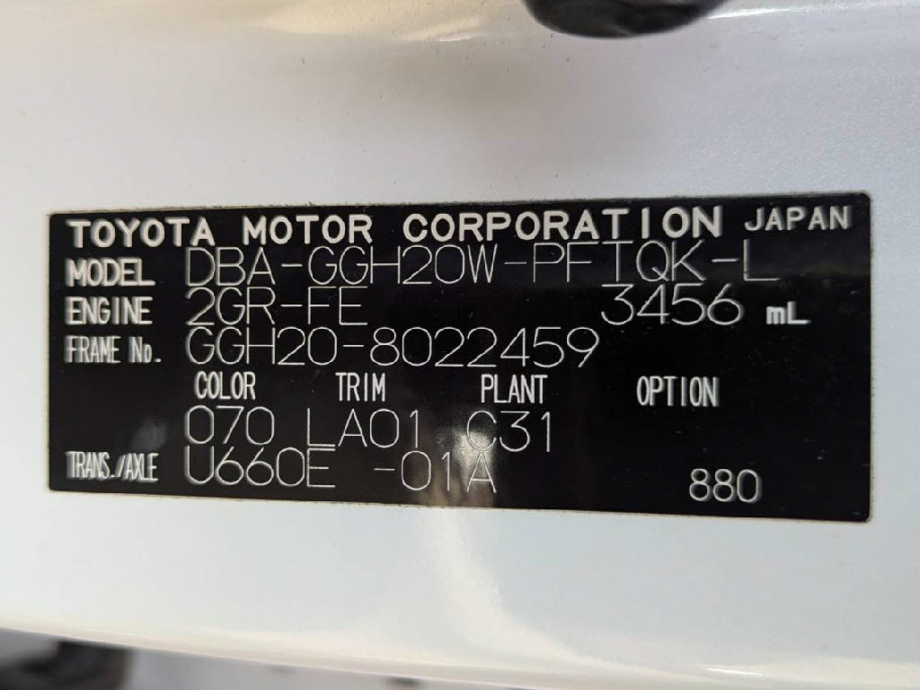 | 車名 | アルファード | 車台番号 | 459 |