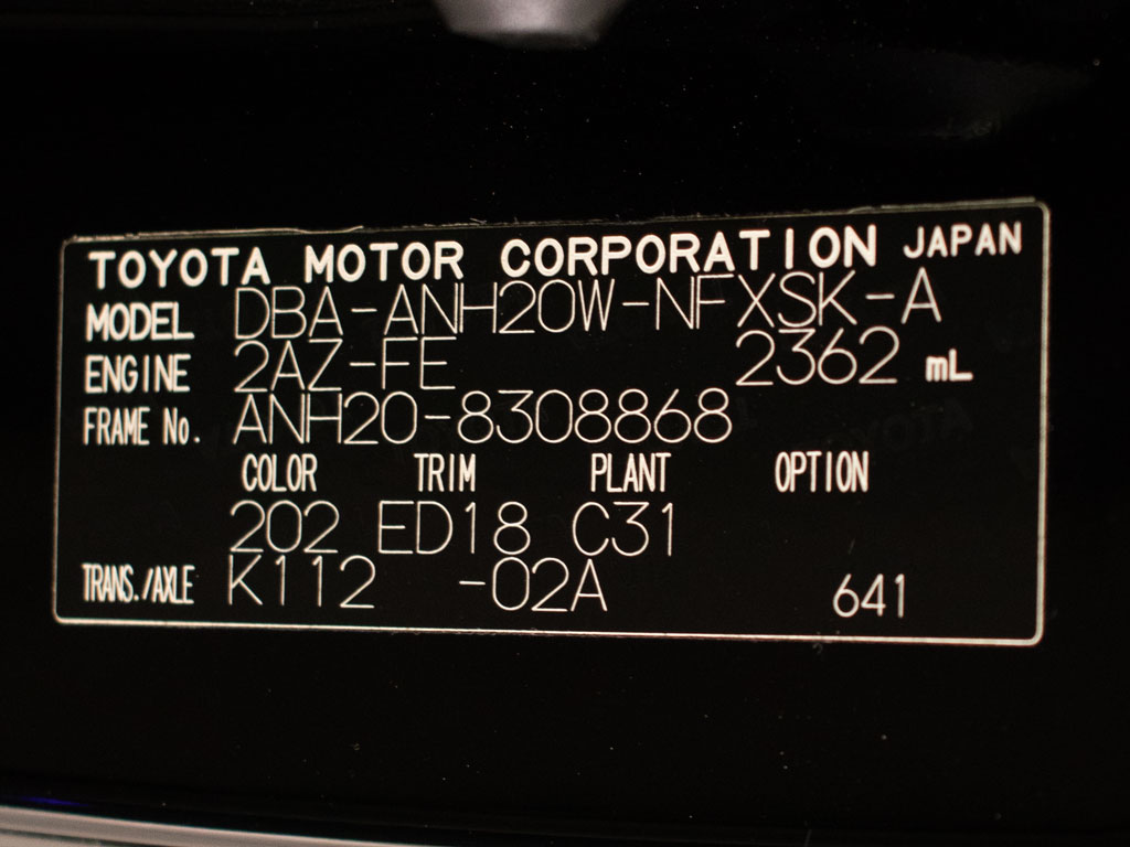 | 車名 | ヴェルファイア | 車台番号 | 868 |