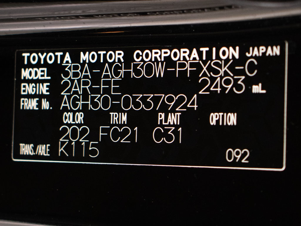| 車名 | アルファード | 車台番号 | 924 |