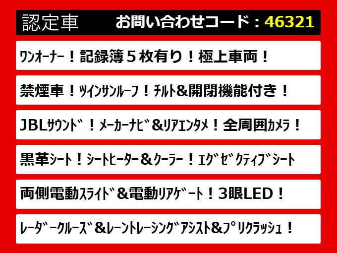 | グレード | アルファード 2.5S-C サンルーフ JBL ワンオーナー 禁煙車 | ||